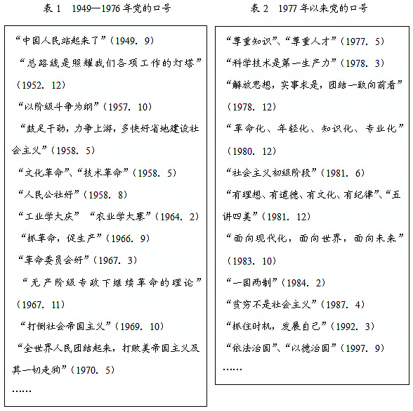 (据杨凤城主编《中国共产党史》整理) 比较表1和表2,提取一项有关党的口号变化的信息,并结合所学知识予以说明。(12分)