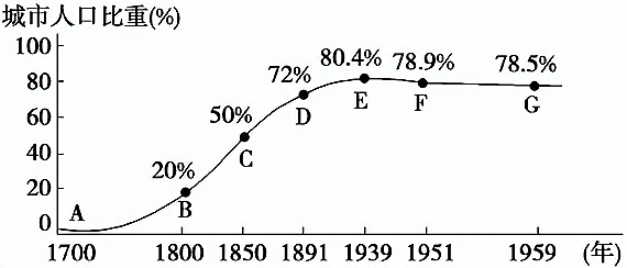 英国城市化发展进程曲线(1700—1959年)