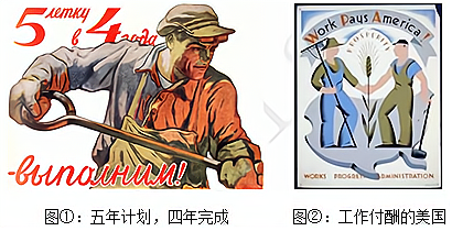 的历史。图①和图②分别宣传20世纪前期苏联、美国的某项措施,两者都( )