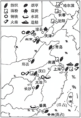 (2)依据材料二,分析指出民国初年民族工业呈现出哪些特点?(4 分) 材料三 1957 年工农业产品产量统计表