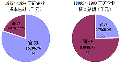 下图是1872—1900年官办和商办工矿企业变化情况。
