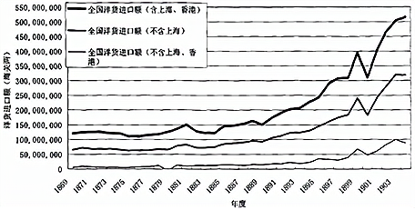 下面是晚清洋货进口额波动图(单位:海关两)这反映出( )