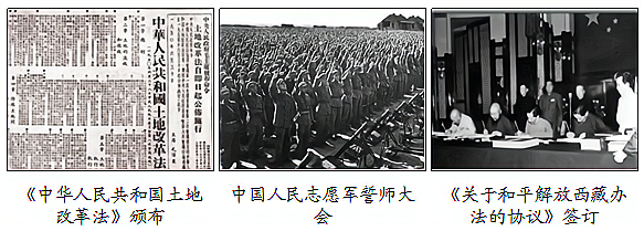 下面是新中国成立初期的三幅历史图片。反映的历史主题是 ( )