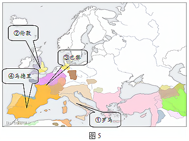 图5中①②③④代表四个国家,对其历史上重要历史人物描述正确的是( )