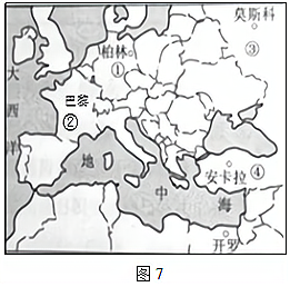 观察图 7 中①②③④代表的四个国家,对其历史上发生的改革描述正确的是( )