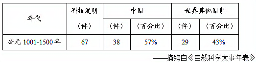 (3)根据表格简要说明这一时期中国科技发明的状况。(1分)这一时期发明的活字印刷术和指南针对世界分别作出了什么贡献?(2分) 【和平的使者】 材料四 明朝时期,郑和率船队七次下西洋,带去瓷器、丝绸、茶叶等中国特产,同时也换回了亚非各国的许多特产,如胡椒、象牙、宝石、香料等。郑和所到之处,受到各国的热情接待。