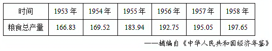 1953—1958年中国的粮食产量表(单位:百万( )
