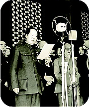 (1)图二反映的是什么时间(写出年月日)发生的什么历史事件?图中发表讲话的人是谁?(3分) (2)请说说该事件的历史意义。(2分)