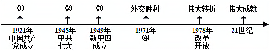 某同学在学习中国共产党90多年的奋斗历程时,自制了历史年代尺,其中③处应该填写的是( )