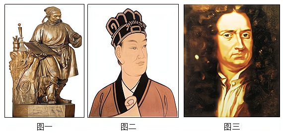 (1)图一为______,他发明了活字印刷术。(2分) (2)图二为_____,他改进了造纸术。(2分) (3)图三为_____,他发现了万有引力定律。(2分)
