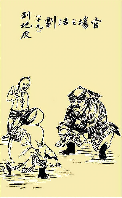 下图为晚清的《官场之活剧——刮地皮》漫画,该漫画表明( )