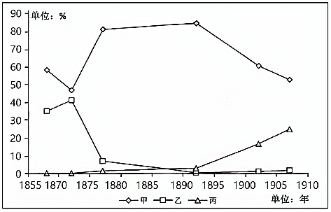 图6为1868—1907年外国在华航运所占市场份额示意图,其中的甲、乙、丙三个国家分别是( )