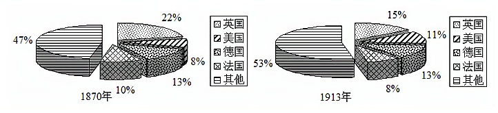 某历史课题小组为了研究世界贸易的发展状况,搜集了如下图片。出现该图所述变化主要取决于各国在世界贸易中所占比重变化( )