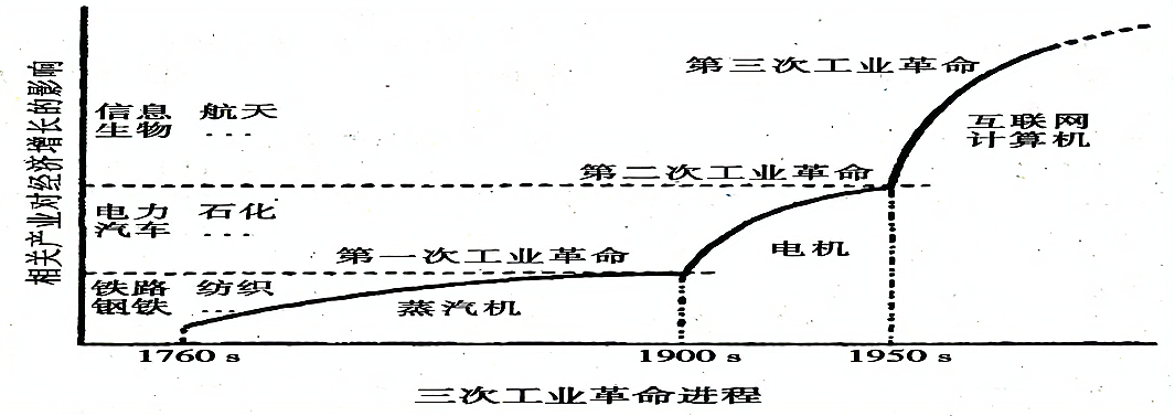 下图是三次工业革命的进程关系图。对此图的正确解读是( )