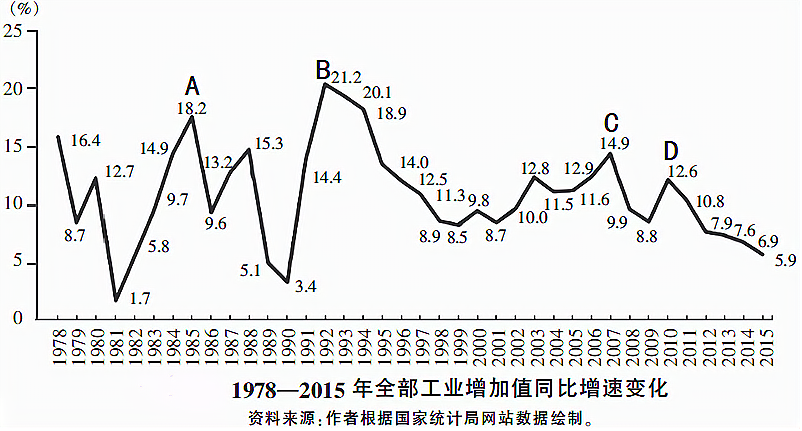 (3)结合所学知识,分析材料三中我国工业增加值同比增速在A点出现高峰的原因及对企业的影响。(4分) 材料四 供给侧结构性改革,重点是解放和发展生产力,用改革的办法推进结构调整,无效和低端供给,扩大有效和中高端供给,增强供给结构对需求结构的适应性和灵活性,提高全要素生产率。