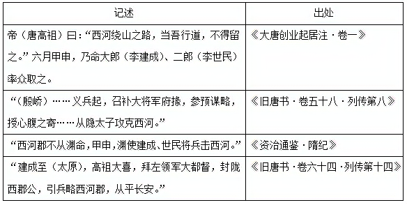 下表为不同史籍对于隋大业十三年同一事件的历史记述。据此能够被认定的历史事实是( )