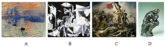 海涅在1830年法国爆发七月革命后写下《颂歌》,内容是“我是剑,我是火焰。黑暗里我照耀着你们,战斗开始时,我奋勇当先,走在队伍的最前列……”下列美术作品与此文学风格一致的是( )