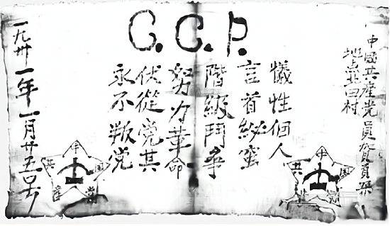 中国共产党的入党誓词,随着党的任务不同和党的建设需要,经历了数次变化。下图中的入党誓词,应出现于( )