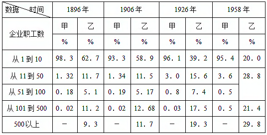 (注:甲=占企业总数的百分比;乙=占职工总数的百分比。以上摘自曼德尔《论马克思主义经济学( )