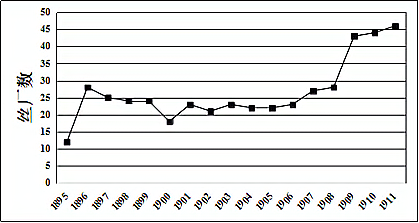 1895年—1911年中国机器缫丝厂数量的变化 图4