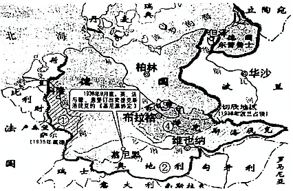 下图是《二战前德国的侵略图》,德国占领的先后顺序是( )