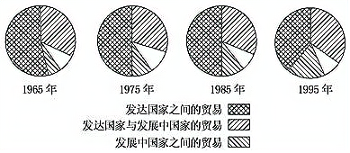 下面为1965—1995年期间不同类型国家的国际贸易在世界贸易总额中所占比重示意图。这反映了( )