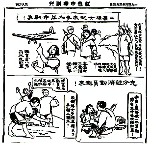 下图为1933年中央苏区《红色中华》刊登的宣传画。它表明,中央苏区( )