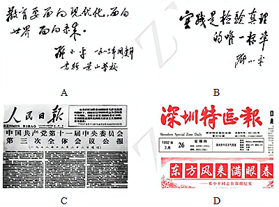 邓小平在一次重要活动中指出,社会主义的本质就是解放生产力,发展生产力,消灭剥削,消除两极分化,最终达到共同富裕。下列图片与这一活动直接相关的是( )