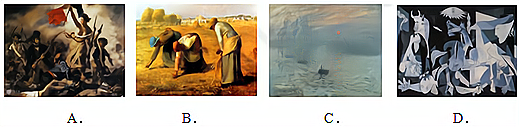 “它创造的艺术世界基于现实,但又不是模拟现实的‘镜像世界’,而是一个想象的、超现实的、主观化了的世界。因此它所创造的艺术形象常常会改变生活原有的形态,在感情和理想的强烈作用下,大胆地、人为地、创造出虚构的意向、人物或环境。”下列作品表现的风格与材料描述一致的是( )
