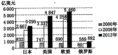 下图为中国与日、美、欧、俄进出口贸易总额的变化趋势,据此可推知( )