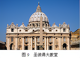 图9是罗马圣彼得大教堂,由拉斐尔和米开朗基罗等做技术总监,其古罗马柱式构图、半圆形拱券、以弯隆为中心的建筑形体蕴含着和谐与理性,并富有人体之美。这种风格( )