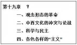 下图是某历史著作第十九章的部分子目录,该章总标题(?处)最合适的是( )