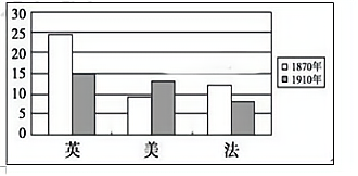 下图为1870年和1910年英、美、法等国在世界贸易中的比重变化图(%)对该图信息解读正确的是( )