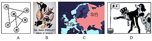 不同利益集团的博弈与较量,影响着世界格局的演进,给国际安全带来新的挑战。下图中体现二战后世界格局的是( )