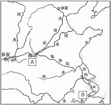 (2)大运河以A_______为中心