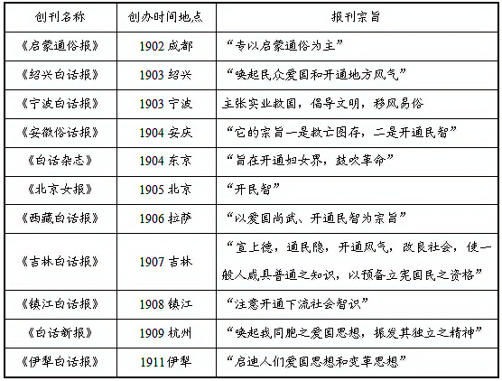 ——摘编自陈晓明《清末白话文报刊及其特殊贡献》等