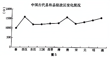 有学者研究指出,中国的县级行政区划最为稳定,历朝历代县级政区的数量总体变化不大,如图5所示: