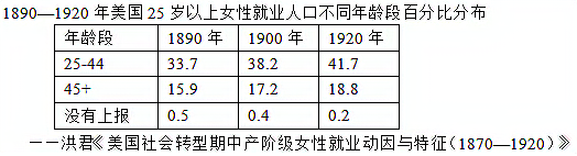 (3)据材料三概括1890—1920年美国25岁以上女性就业情况变化的趋势。结合所学,举出导致这一变化的原因(举两条)。(3分)