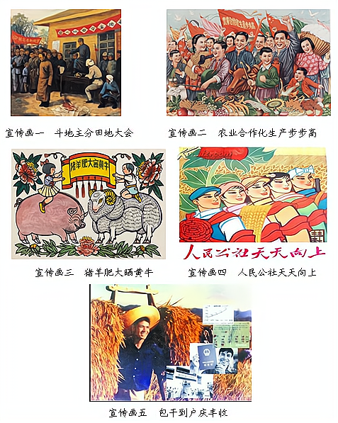 (1)宣传画一中的“大会”的出现与建国后什么历史事件有关?(1分)结合所学知识,从国家发展方面概括这一事件的历史意义?(2分) (2)宣传画二中的历史事件完成后,我国农村生产资料所有制形式发生了怎样的变化?(1分) (3)宣传画三、四分别反映了什么历史事件?(2分)产生了怎样的严重后果?(1分) (4)宣传画五中的场景,得益于什么制度的实施?(1分) (5)综合上述材料,你认为农村政策的调整应遵循哪些原则?(2分)