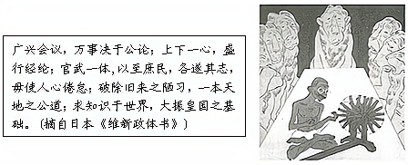 (2)历史解释须揭示历史事件间因果关系。据下列文字和图片材料,指出日本与印度对待欧洲文明的不同态度和共同目的,分析导致两国相同目的的主要原因。(5分)