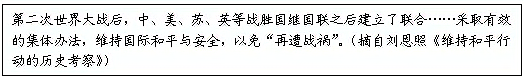 (3)历史解释须表达自己的见解。据下列材料,概括建立联合国的主要目的。综合上述材料,写出你对世界历史演变的主要观点。(3分)