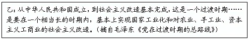 (2)新中国成立是中华民族的又一大变局。概括材料乙中“党”的总任务,结合1956年的相关史实,说明总任务的完成情况。(4分)