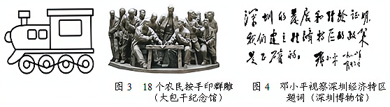 任务单三: 参观大包干纪念馆和深圳博物馆后,思考并回答: (5)由小岗村农民的做法推广推广到全国的农村改革政策是什么?(1分) (6)深圳经济特区的创办是十一届三中全会作出的哪一重大决策的具体表现?(1分)结合所学知识概括指出邓小平在这决策制定过程中发挥的重大作用。(1分) 【研学之思】 通过参加以上研学活动,联系现实,谈谈你的感想。(至少写出两点)(2分) |