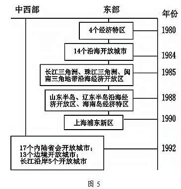 (10分)“文明因多样而交流,因交流而互鉴,因互鉴而发展。”结合所学知识,回答下列问题。 (1)新文化运动中,中国先进知识分子宣传西方的什么思想,起到什么作用?(3分) (2)马克思主义在五四运动后是如何推动中国近代社会进步的?(2分) (3)“中华文明有力推动了人类文明发展进程”。请结合世界近代史有关史实说明。(2分) (4)“中华文明是在同其他文明不断交流互鉴中形成的开放体系”。请从图5中提取一个有关“对外开放”的信息并分析其意义。(要求:提取信息明确,分析具体,表述清楚)(3分)