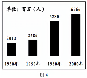 图4为1930~2000年世界人口数量变化图。