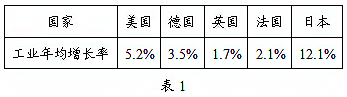 表1为1874~1890年美、德、英、法、日五国工业年均增长率表。