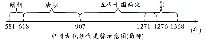了解历史时序,初步掌握历史发展的基本线索是学习历史的基本要求。与下图中①对应的朝代是 ( )