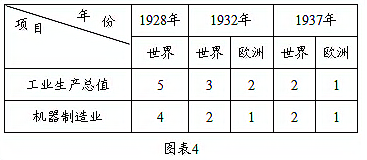 图表4为1928~1937年苏联工业产值及重要工业产品在欧洲和世界的排名。导致这一时期,西欧国家工业发展滞后苏联的原因( )