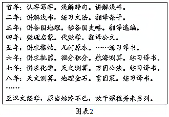 图表2是洋务派创办的京师同文馆课程计划表。这体现了,洋务派创办新式学堂目的是( )