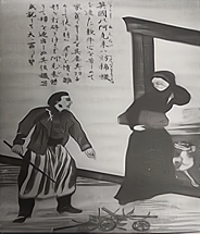 下图是19世纪下半叶日本创作的《纺纱机的发明者》,画面配文:
